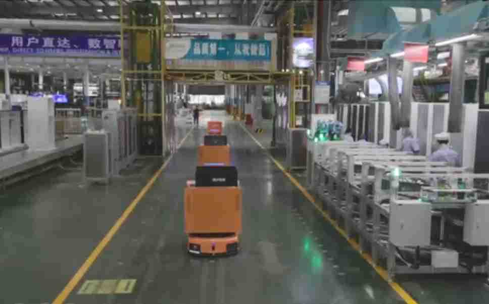 为车载冰箱物流配送打造的智能解决方案,,,包含产中物流通过潜伏举升AMR搬运至线边,,产后成品物流智能仓储,,流程包含产中物流智能齐套入库,,,线边安灯叫料AMR智能配送至线边,,,,成品入库、、、、出库,,,通过无人堆高车机器人,,,,智能仓储管理替代人工作业管理,,实现更高存储、、、、更高效率、、、、更具柔性化的解决方案。。。。